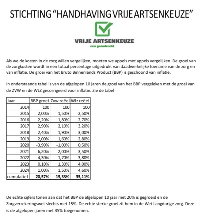 Verder wijst SHVA op wachtlijsten en op het niet kúnnen contracteren omdat verzekeraars dat, via een standaardmail gemeld, niet toestaan. Daarnaast stelt de SHVA dat de groei van de kosten voor de zorg in de afgelopen tien jaar juist achtergebleven zijn in vergelijking met de groei van ons nationaal inkomen, het Bruto Binnenlands Product (BBP). De SHVA laat daartoe in hun persbericht het volgende plaatje zien…