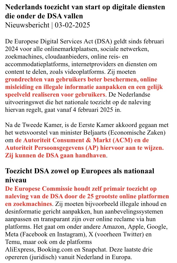 - De VS die de Digital Services Act van de EU niet lijkt te accepteren (hier/blog/hier/hier).