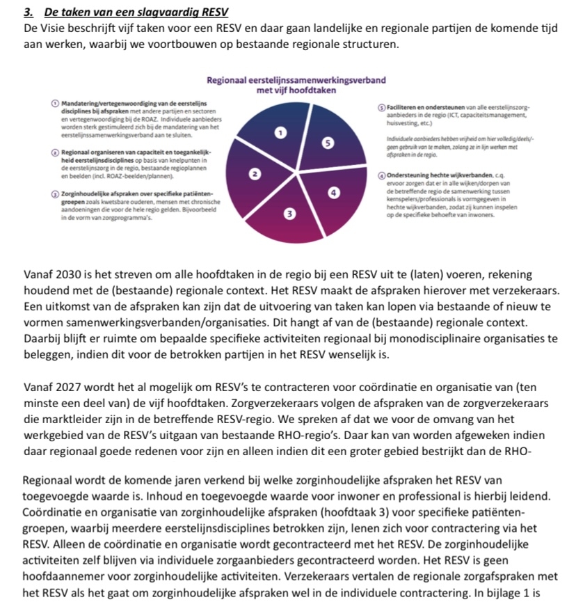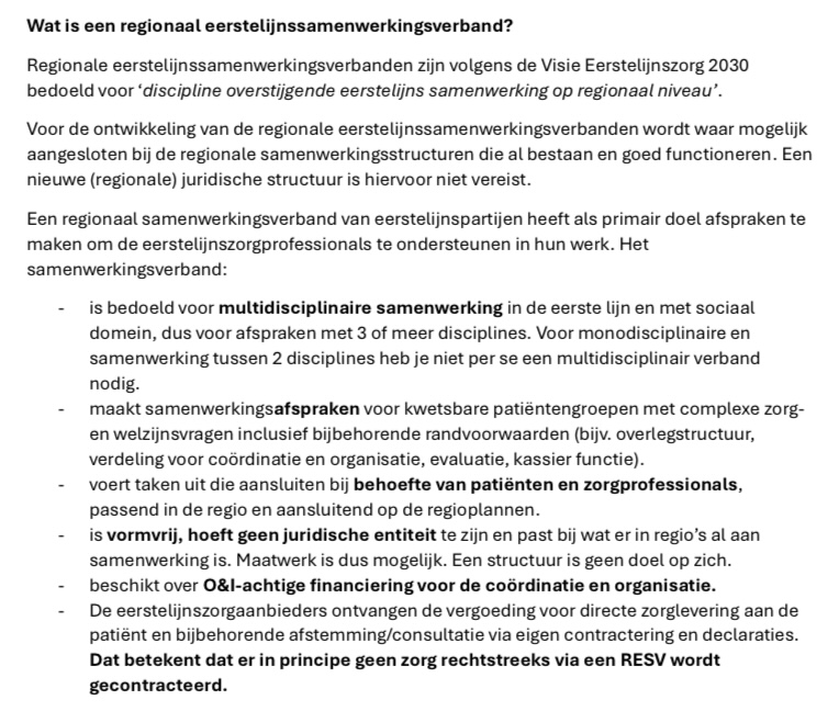 *De taken van een slagvaardig RESV (Bron: Uitwerking regionale eerstelijnssamenwerkingsverbanden, 3 juli 2025, pg.4 en 10)