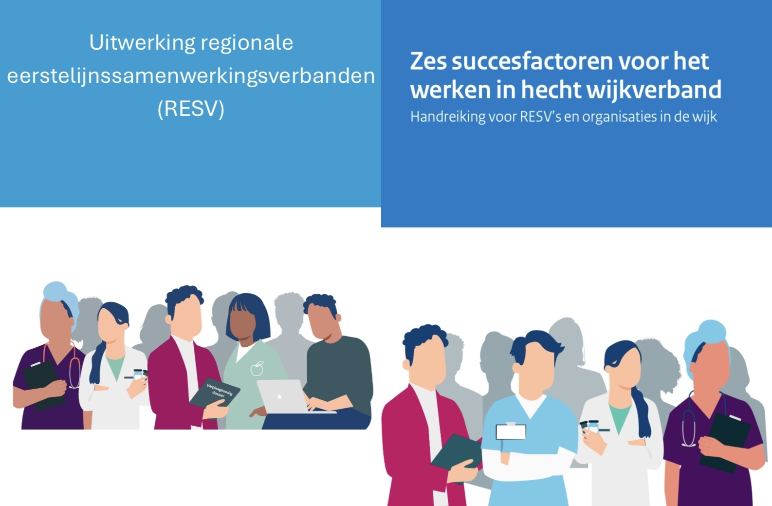 In de Visie eerstelijnszorg 2030 (blog) worden ten behoeve van multidisciplinaire samenwerking binnen de eerste lijn én tussen de eerste lijn en andere domeinen twee samenwerkingsverbanden genoemd: hechte wijkverbanden en het Regionale Eerstelijnssamenwerkingsverband (RESV). Binnen het wijkverband wordt samenhangende zorg geboden aan mensen met complexe zorg- en welzijnsvragen (hier). Het RESV ondersteunt deze wijkverbanden en kan daarnaast regionale vraagstukken op het gebied van o.a. arbeidsmarkt en ICT oppakken.