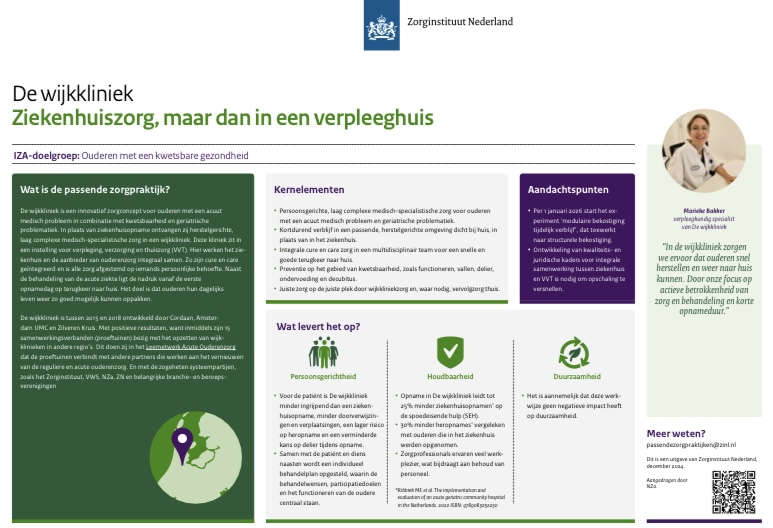Factsheet ZiN: De wijkkliniek. Ziekenhuiszorg, maar dan in een verpleeghuis (ZiN, 3 december 2024)
